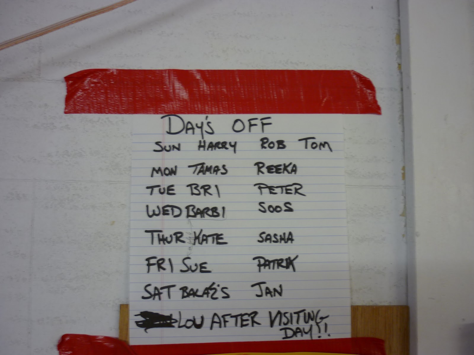 Most jövök vacsiról és mikor beléptem éppen Thomasonnal beszéltem és egyszer csak Lou szól, hogy Bri! 6:00 AM tomorrow morning. (vagyis, hogy legyek bent reggel hatra holnap). Én persze ahogy szoktam, megijedtem, hogy vajon valami rosszat csináltam?????? de hát bent sem voltam. Dórika is nyugtatgatott, hogy semmit nem csinálhattam. Day off-on így is bent voltam és segítettem...... szóval ne aggódjak. Na gyorsan Balázst is megkérdeztem, de ő is mondtam, hogy semmi gond sincs.